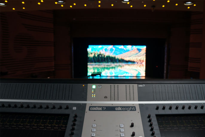 调音台系统采用的是一主一备的形式,主扩调音台是Cadac的大型旗舰级数字调音台CDC8,备份调音台采用的是同样来自于Cadac的S-TYPE大型模块化模拟调音台。CDC8是Cadac用于大型固定安装的最佳选择,其无论是声音品质、处理能力以及操作方式都可以说是集Cadac数字调音台研发成果之大成者。该调音台专为高端巡演和固定安装设计,它具备一个独特的“高度快捷”用户界面,通过2个24寸高分辨率LCD触摸屏进入操作系统,是同类型调音台中最大的多点触摸屏可以提供最清晰直观和最快捷的操作平台,同时也能将误操作率大大降低,独特的自定义通道处理功能,彻底颠覆了传统数字调音台的设计观念,创立出一种全新的操作模式。CDC8可提供128路输入并可扩展到256路,具备48路输出,可提供16或32路推子的两个型号,并且可以将多台CDC系列调音台连入Cadac自行开发的MegaCOMMS网络系统,组建无比强大且低延时高品质的调音网络。高达96kHz的采样频率以及最高可达40Bit的数字处理能力,提供了CDC8极低的失真和宽阔的动态范围,其音质远超其实际售价的档次。未来剧院采用了一套CDC IO 6448舞台接口箱通过同轴传输MegaCOMMS协议连接到远在80米外的音控室里的CDC8调音台极低的延迟保证了杰出的音质。