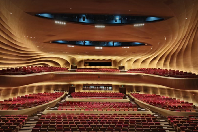 在拥有1300座观众席的综合大剧院内,采用了整套德国K&F沉浸声音频系统。该系统以K&F SCALA沉浸声音频处理器为核心,搭载近百只K&F主扩、超低、补声及返听等专业扬声器以及网络数字功放,共同构建出高性能一体化音频解决方案。