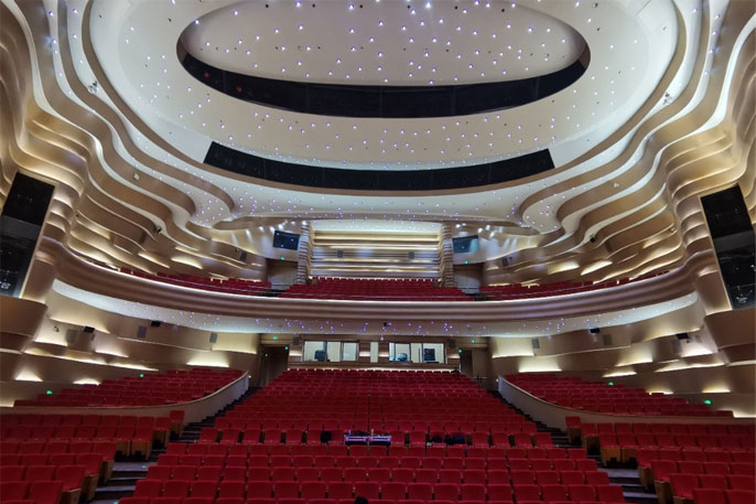 剧院内,可容纳千名观众的演出大厅宽敞明亮,先进的声学设计确保了绝佳的音效体验。在这里,无论是气势磅礴的交响乐,还是细腻婉转的戏曲唱腔,每一个音符都能被精准地传递到观众耳中,让人们仿佛置身于艺术的海洋,沉浸其中,难以自拔。而这一切卓越的视听体验,都源自大剧院精心选用的德国KLING&FREITAG(K&F)扬声器扩声系统。
