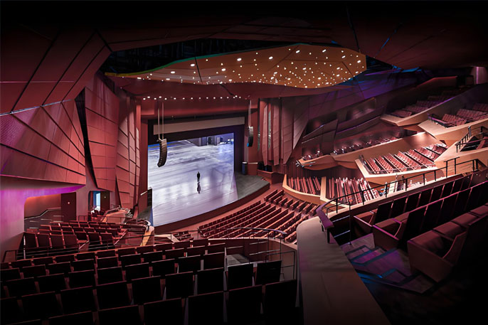 大剧院的戏剧厅设计也颇有特色,可将座椅全部收起,使所有观众处于同一平面,形成类似传统戏剧的表演空间。也可以满足“沉浸式剧场”的演出需求。