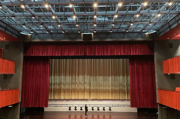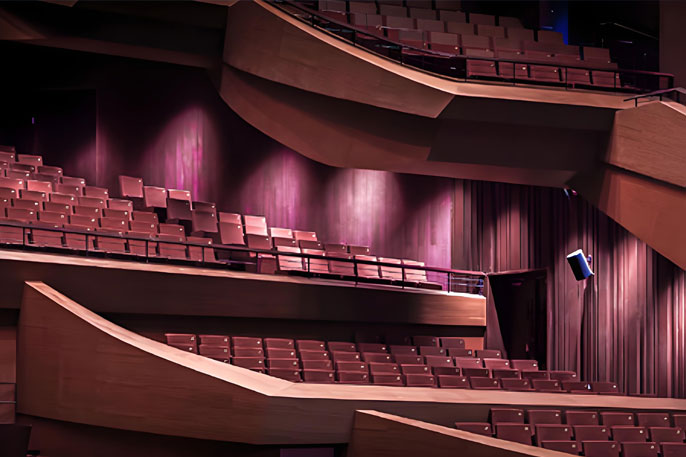 戏剧厅在国内首次采用了Kling&Freitag(K&F)最新推出的SPECTRA 212可变线阵列扬声器。SPECTRA 212是一个紧凑的三分频高性能全频扬声器,在一个紧凑的外形下有着非常高性能的最佳可能发散角度。集成了Kling&Freitag(K&F)VARI Q技术, SPECTRA 212既可以做点声源使用,还可以集束排列做线性声源使用。在两种模式中的堪称范本的声场辐射,使得SPECTRA 212可以从容面对苛求的扩声任务,尤其是可以在那些建声条件很恶劣的环境中独当一面。戏剧厅顶部采用了左中右三组的吊挂安装形式,充分发挥了SPECTRA 212音质细腻,覆盖准确的特点。戏剧厅还准备了一套LINE 212系统做流动演出系统,用以应对不同的演出需求。