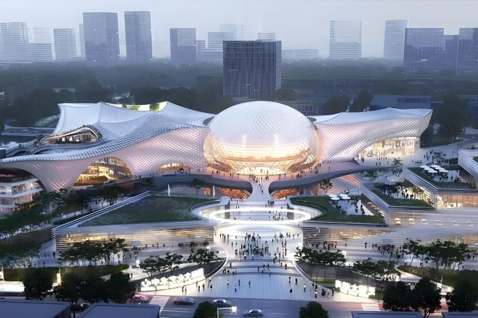 无锡交响音乐厅是一座正在建设中的未来文化地标,坐落于太湖湾科创城核心区。它以“交响明月”为设计理念,独特的圆形建筑外观宛如一轮从太湖升起的明月,极具艺术感与辨识度。音乐厅集专业演出、艺术交流与商业体验于一体,内含一个1500座的专业交响乐主厅和一个500座的多功能演奏厅。其设计不仅注重卓越的声学效果,还创新性地融合了光伏发电等绿色科技,旨在打造一个科技与人文交织的艺术殿堂。预计于2026年建成后,它将成为无锡乃至长三角地区重要的文化艺术新高地。