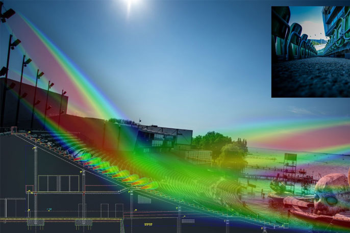 工程师面临的另一个挑战是干涉,因为扬声器数量巨大。除了舞台上和看台周围由数十个桅杆上安装的K&F扬声器(K&F SPECTRA 212)组成的主要系统外,还有数百个声源散布在观众中。Müller BBM的物理学家冈特·恩格尔说:“人耳对感知信号的自然性非常敏感。如果你能让听众的耳朵相信感知到的声音是自然的,那么音质就不再是问题了,你可以直接了解观众的情绪。自然声场包含无数不相关的反射,你需要在露天环境中再现这些反射来达到这一效果。这就是为什么270个Linus系统由我们的Vivace处理器提供96个单独通道的原因。这些都会对围绕每个听众的声场产生不相干涉且可单独塑形的效果。”