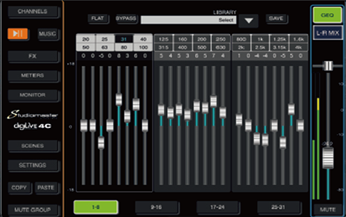 ● L/R主混音输出上的31段图示EQ